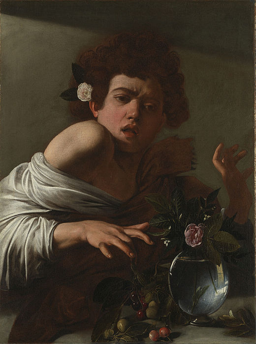 Ill. Garçon à la corbeille de fruits, vers 1593, Galerie Borghèse / Le jeune Bacchus malade, vers 1593, Galerie Borghèse . / Jeune garçon mordu par un lézard, 1595-1596, National Gallery, Londres.